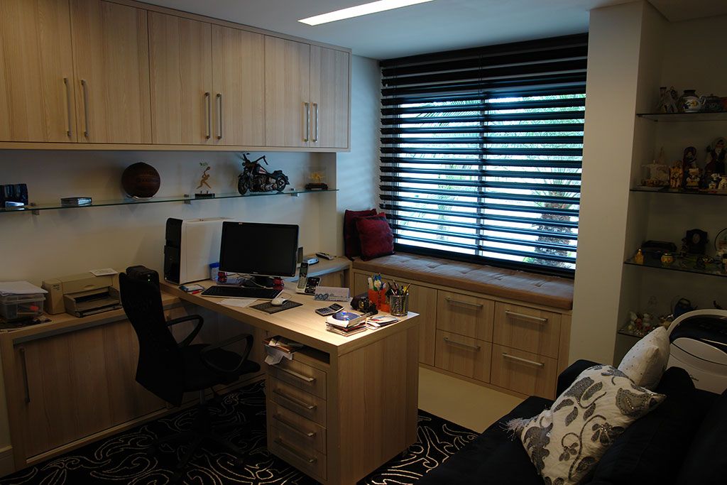 Nossa Marcenaria realiza móveis planejados para escritórios com materiais de alta qualidade e com design moderno e prático. Você pode utilizar os móveis planejados em um escritório em casa ou em sua empresa. Realizamos o projeto de seu escritório planejado nos mínimos detalhes, de acordo com a necessidade de utilização e acabamento.